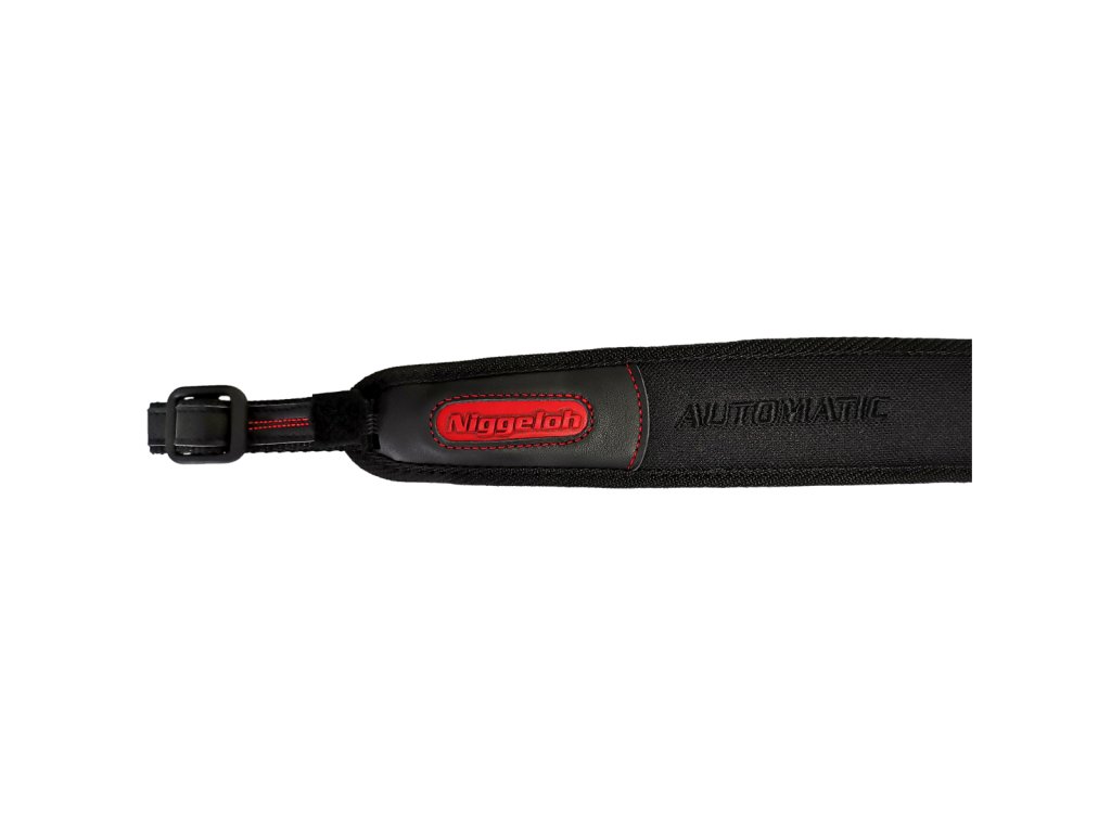 - automatický sťahovací Remeň na pušku čiernej farby s koženým lemom