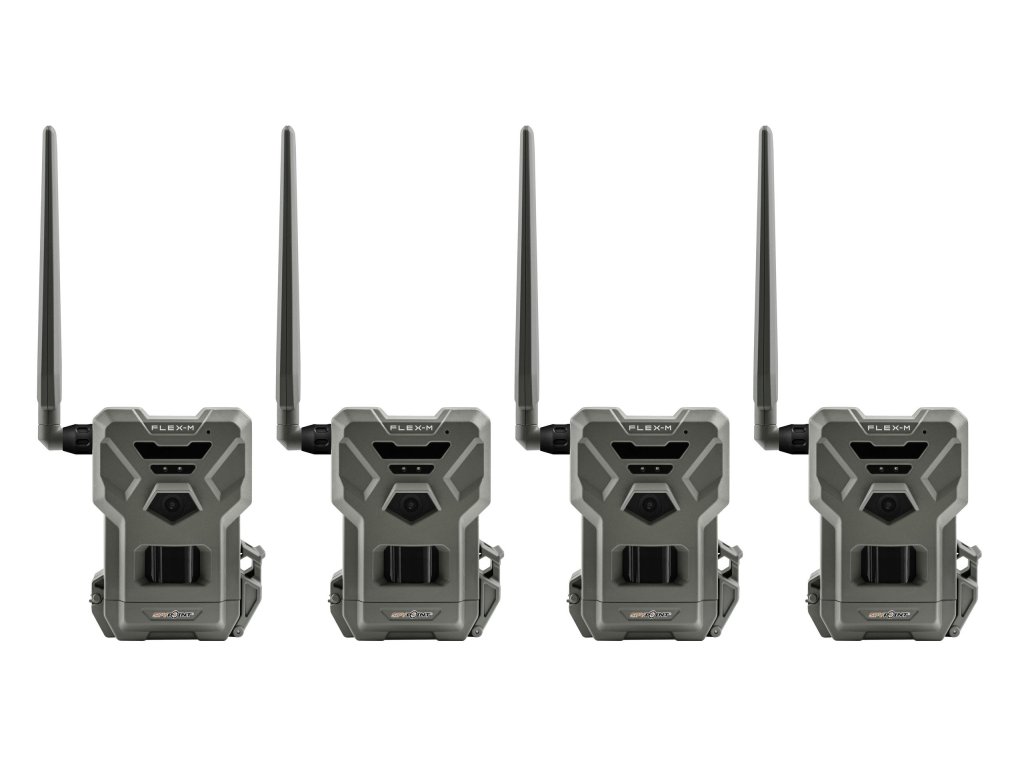 Spypoint fotopasce Flex-M v 4-dielnej súprave. S funkciou prenosu obrazu. Rozlíšenie 28 MP. Funkcia fotografií a videa (720p so zvukom). Flexibilná rýchlosť spúšte do max. 0,4 s. Dosah blesku cca 27 m. Automatická voľba najsilnejšej siete. Odosielanie záznamov cez mobilnú sieť. Konfigurácia kamery pomocou aplikácie pre smartfóny. Aktualizácie a zmena času sa vykonávajú automaticky. Kompatibilné s kartami microSD do 512 GB (nie sú súčasťou balenia). Chránené podľa IP65. Napájanie pomocou 8 AA batérií (nie sú súčasťou balenia). Alternatívne napájanie pomocou akumulátora LIT-22 alebo solárneho panela Spypoint (nie sú súčasťou balenia). Rozmery každej kamery 8 x 10,2 x 13 cm. Hmotnosť každej kamery 272 g. Každá kamera sa dodáva vrát. antény, montážneho popruhu, SIM karty a batériového zásobníka.