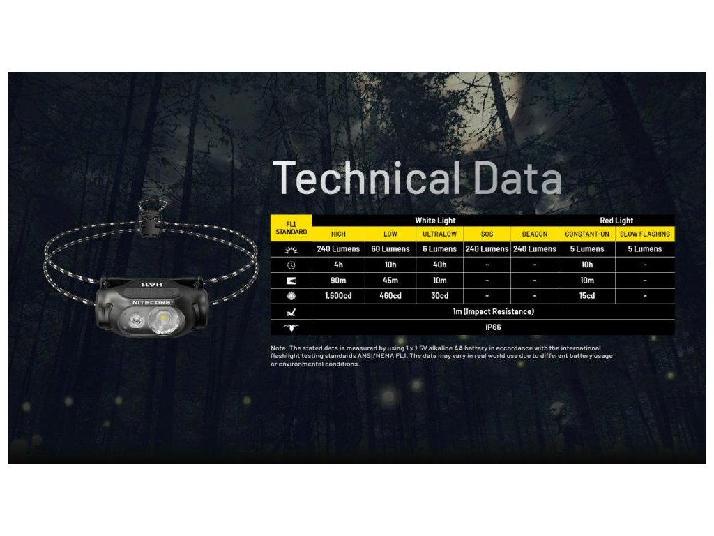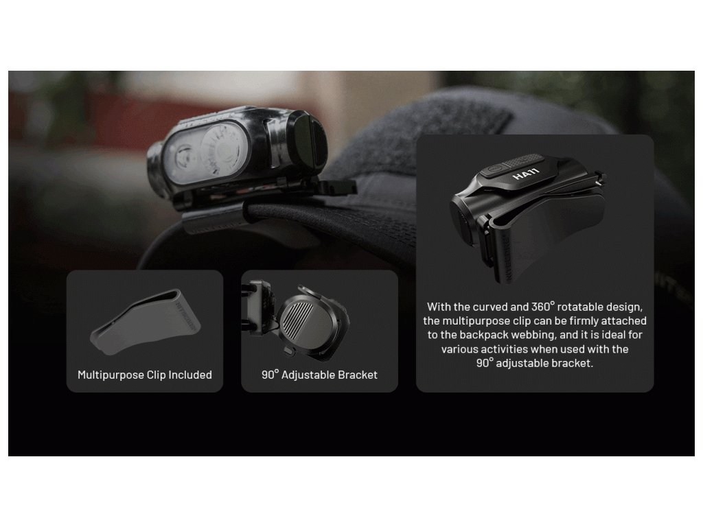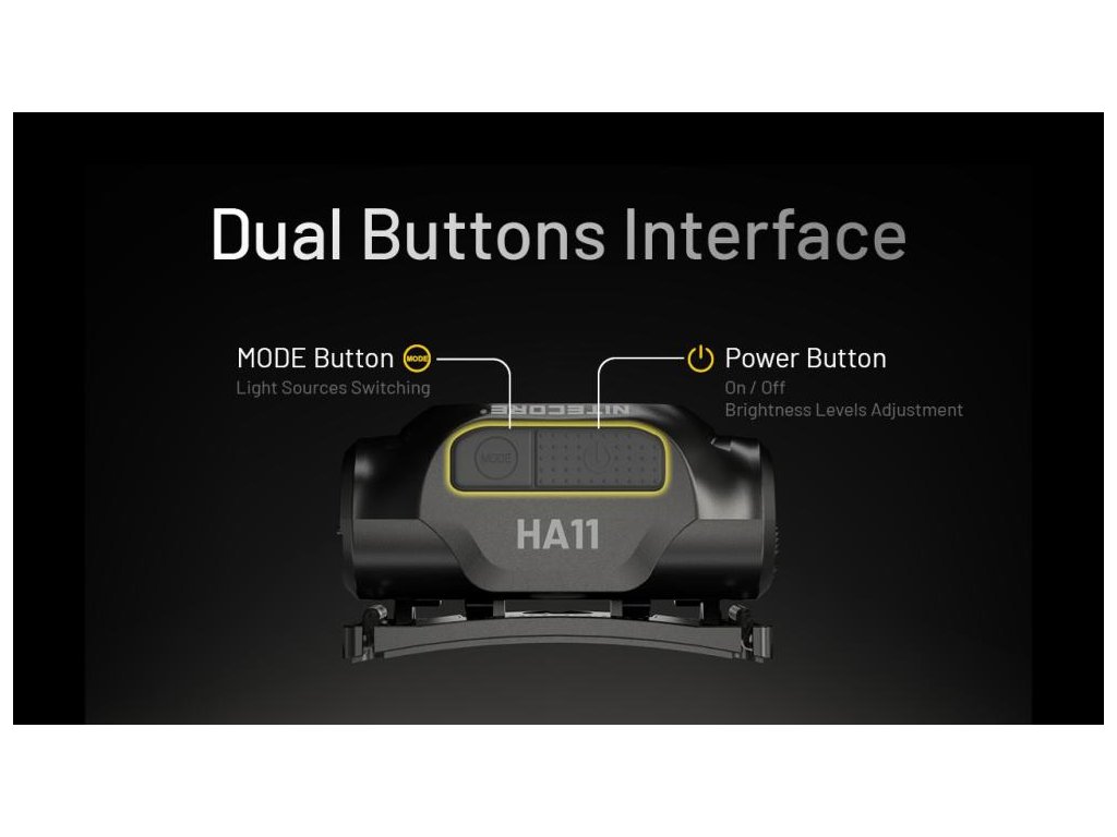 - HA11 je ultraľahká čelovka napájaná jednou batériou typu AA a umožňuje biele a červené osvetlenie.