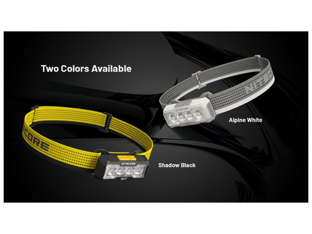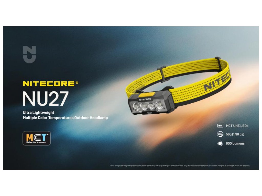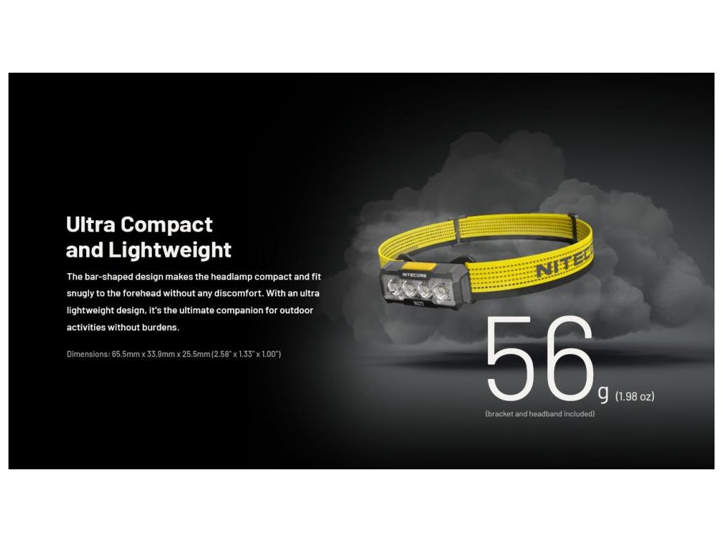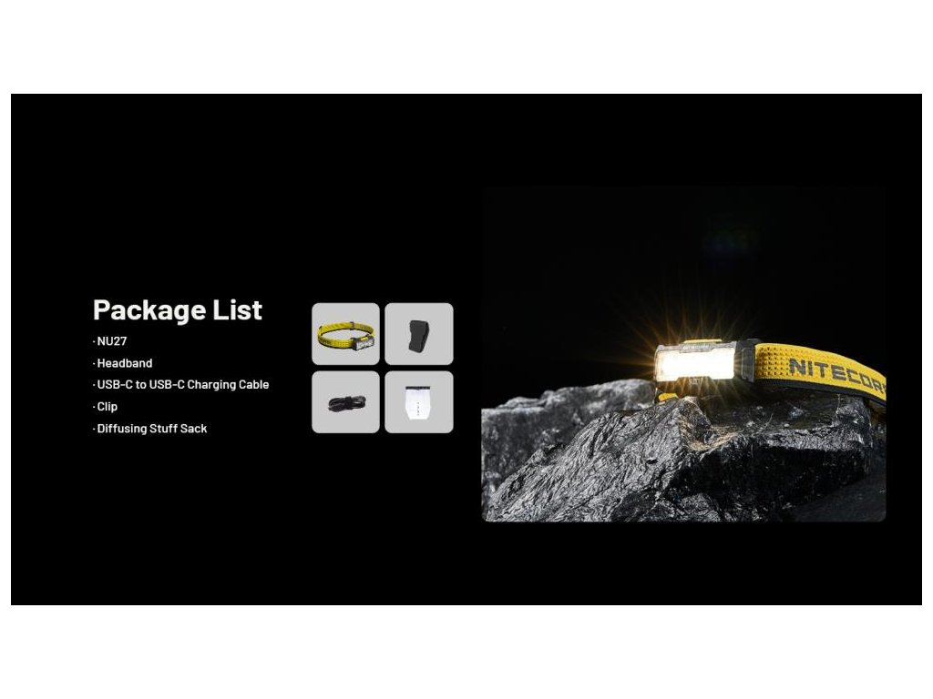NU27 je štvor lúčové svietidlo na čelo s USB-C dobíjacím portom.