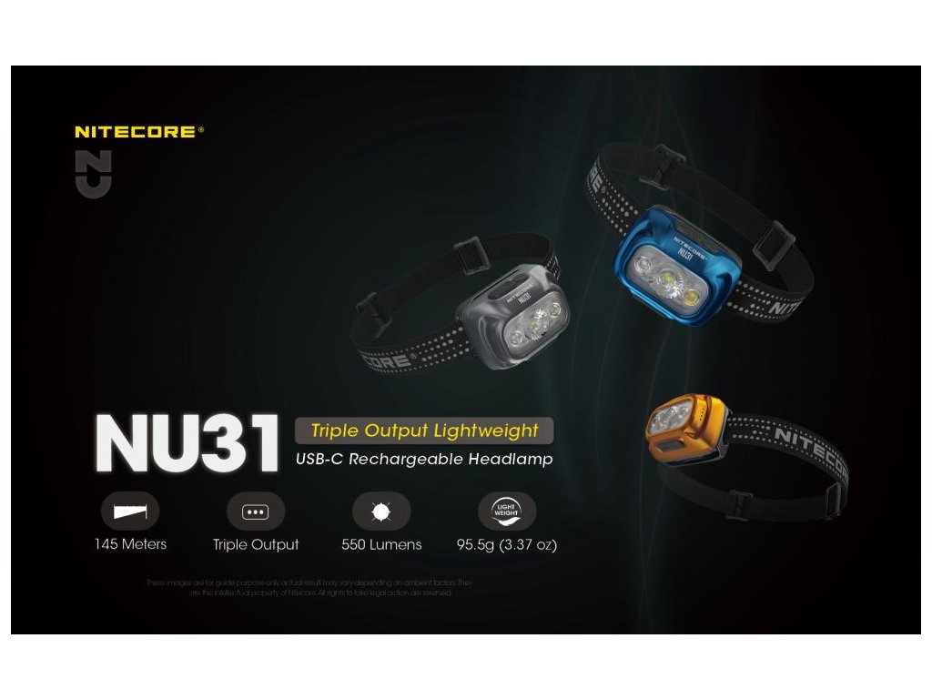Pred prvým použitím otvorte uzáver nabíjacieho portu. Nabite batériu svietidla NU31 pomocou USB-C kábla pripojenim na externý zdroj napájania (adaptér, počítač, iné USB nabíjacie zariadenie). Nabíjací proces trvá približne 1,5 hodinu. Plne nabité svietidlo vydrží v pohotovostnom režime cca. 12 mesiacov.