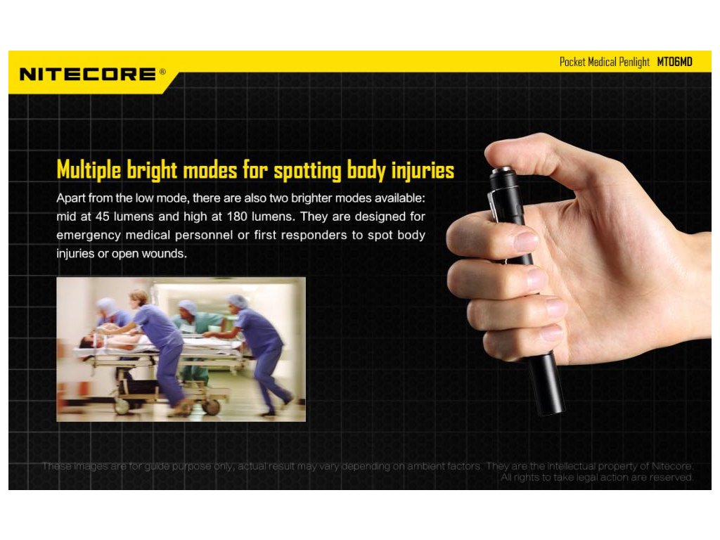 - Tri rýchlo zapínateľné módy vyhovujú rôznym užívateľským požiadavkám - prvý mód je vždy najnižší.