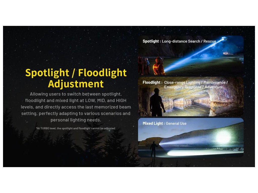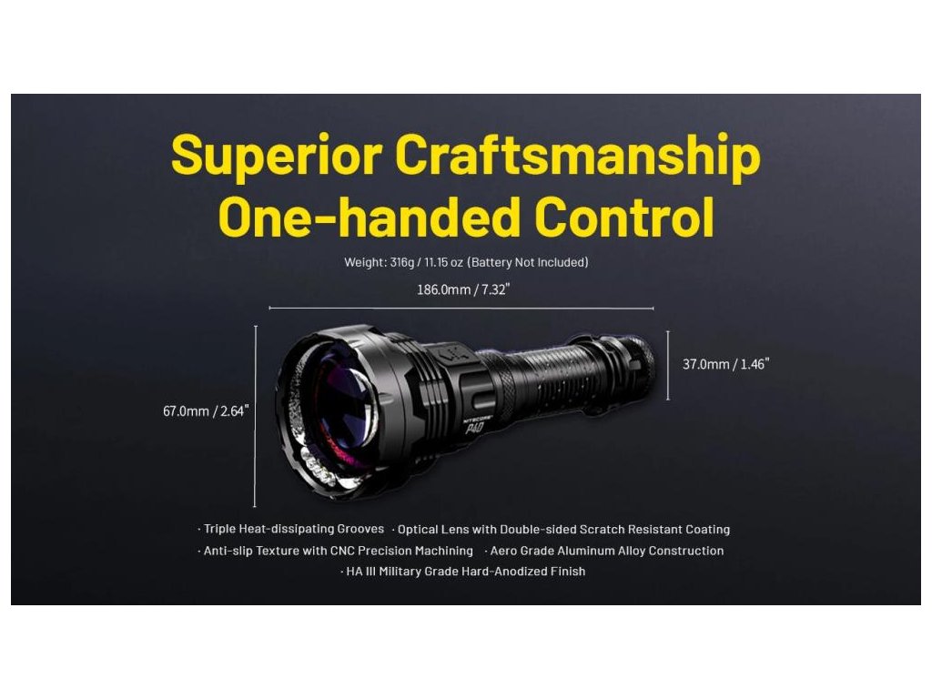 - Optimalizovaný, výnimočne presne navrhnutý reflektor poskytuje dlhší dosvit lúča ako konkurenčné produkty.