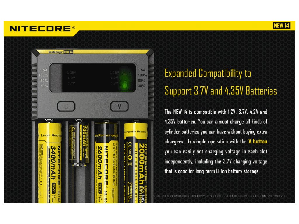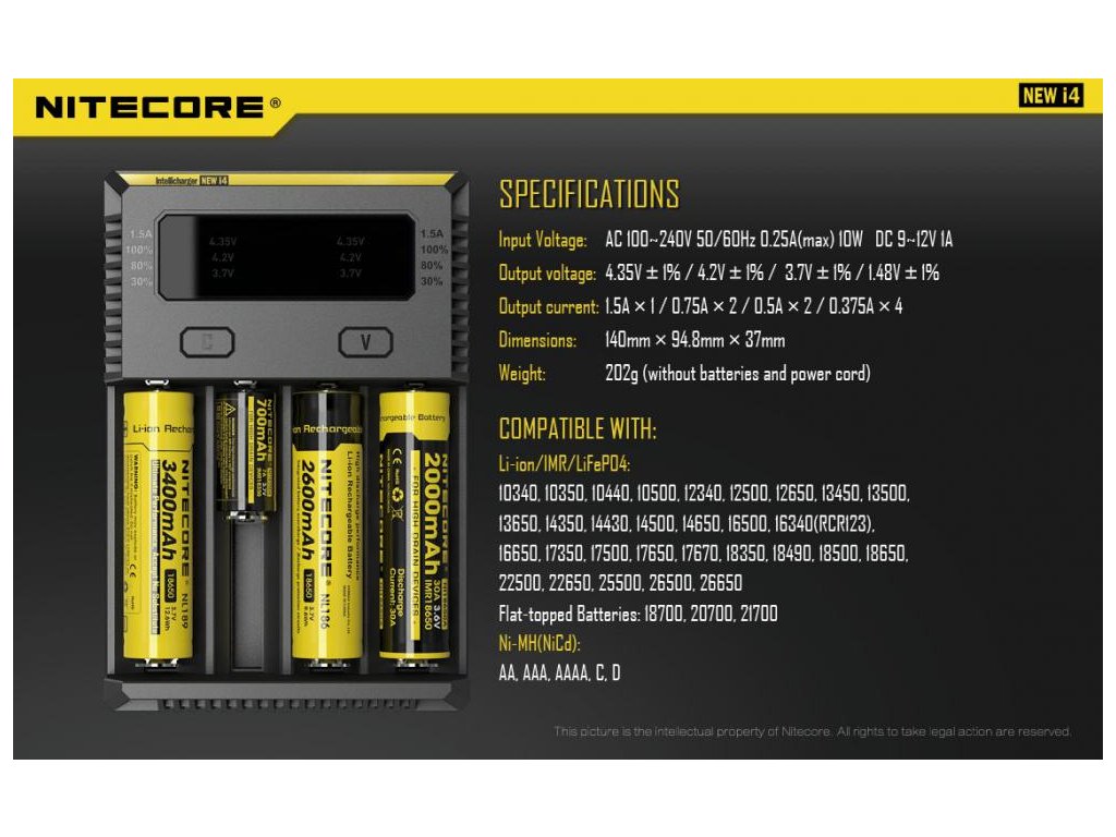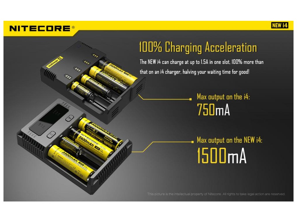 Intellicharge i4 je univerzálna inteligentná nabíjačka, kompatibilná s takmer všetkými typmi akumulátorov, čím sa vyhnete potrebe vlastniť viacero nabíjačiek. Nabíjačka i4 dokáže automaticky rozpoznať Li-ion, Ni-MH a Ni-Cd nabíjacie batérie a aplikovať tak vhodný režim nabíjania. Každý mikroprocesorom riadený nabíjací slot je schopný sledovať a nabíjať batériu samostatne. Nabíjanie je jednoduché, stačí vložiť batériu, nabíjačka vykoná detekciu a nabíjanie je automatické.