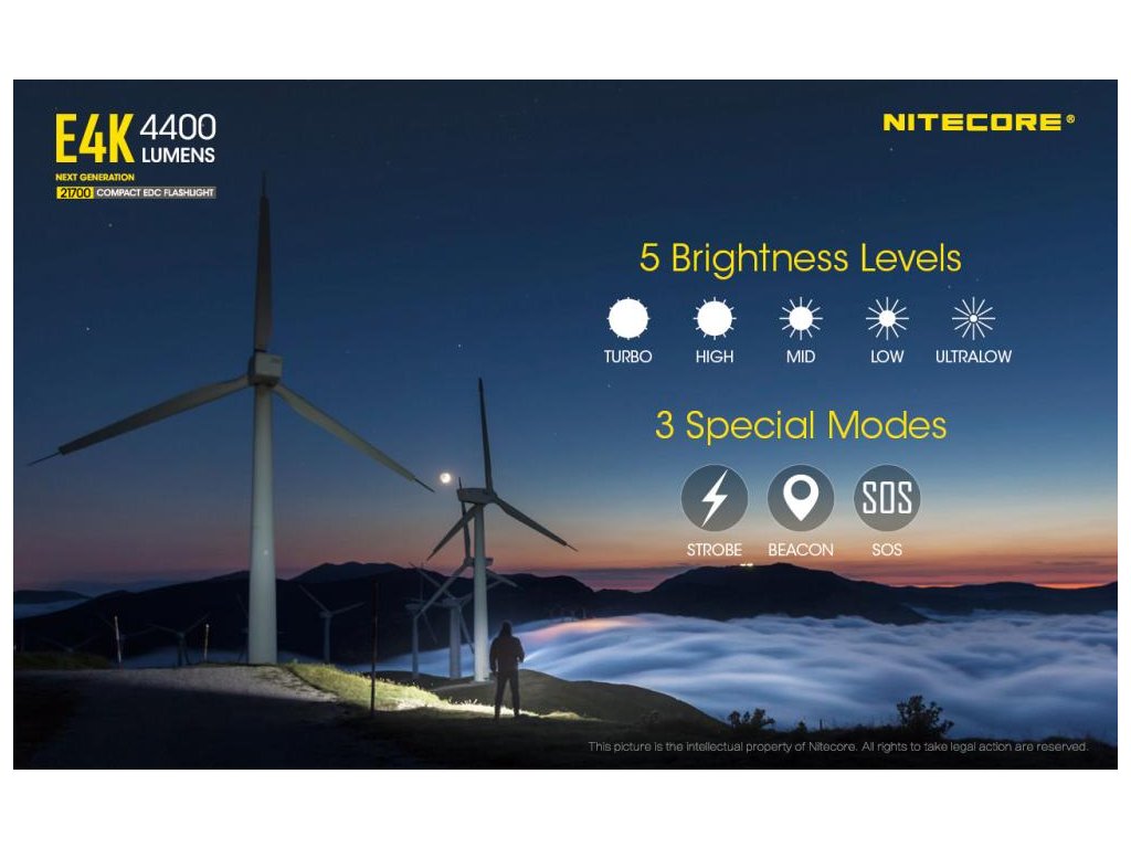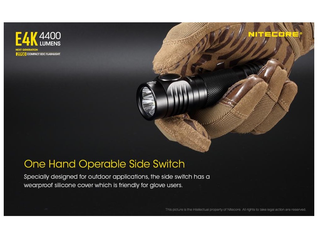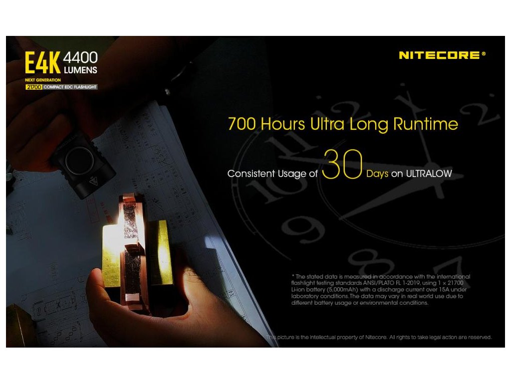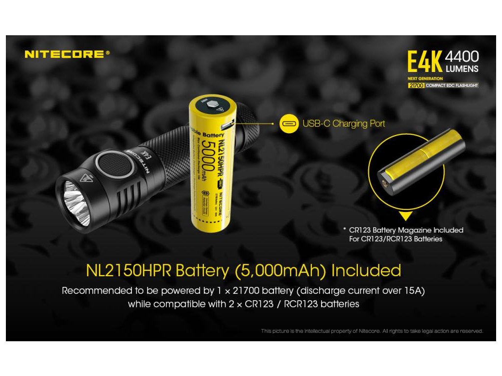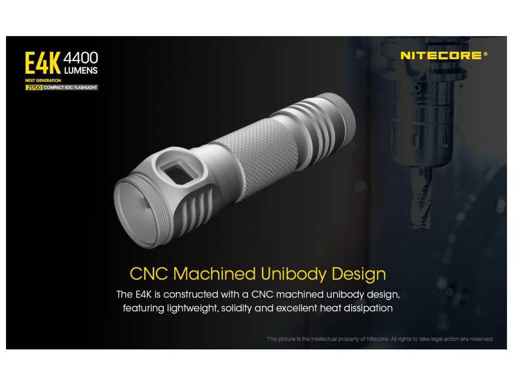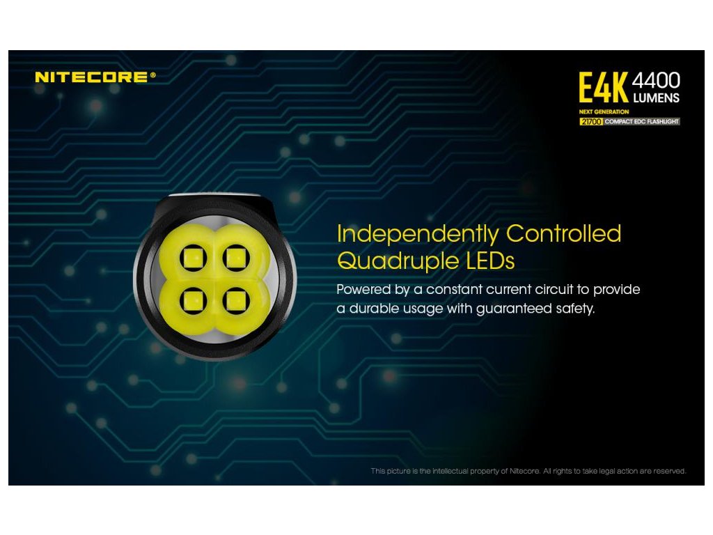 - E4K je svietidlo EDC (Every day carry) ďalšej generácie s batériou typu 21700 určené pre denné nosenie.