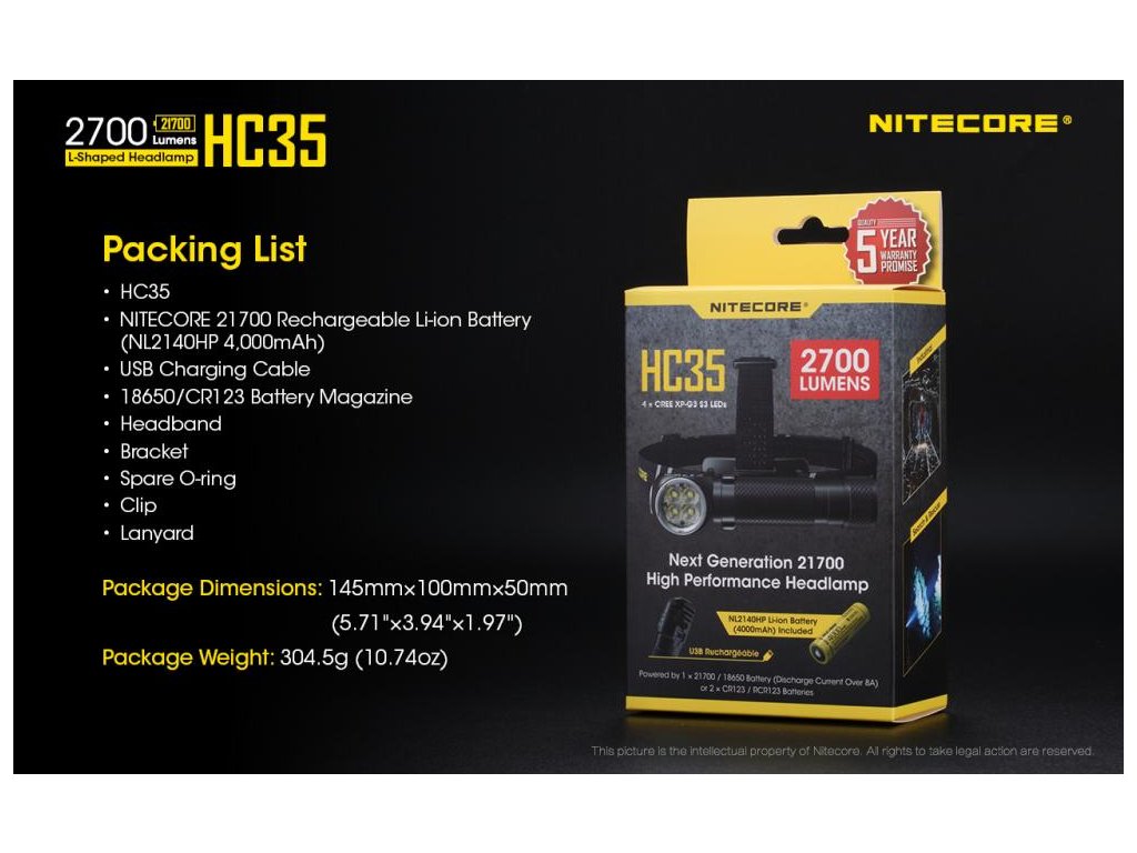 NITECORE HC35 - vysokovýkonná čelovka + NL2140HP
