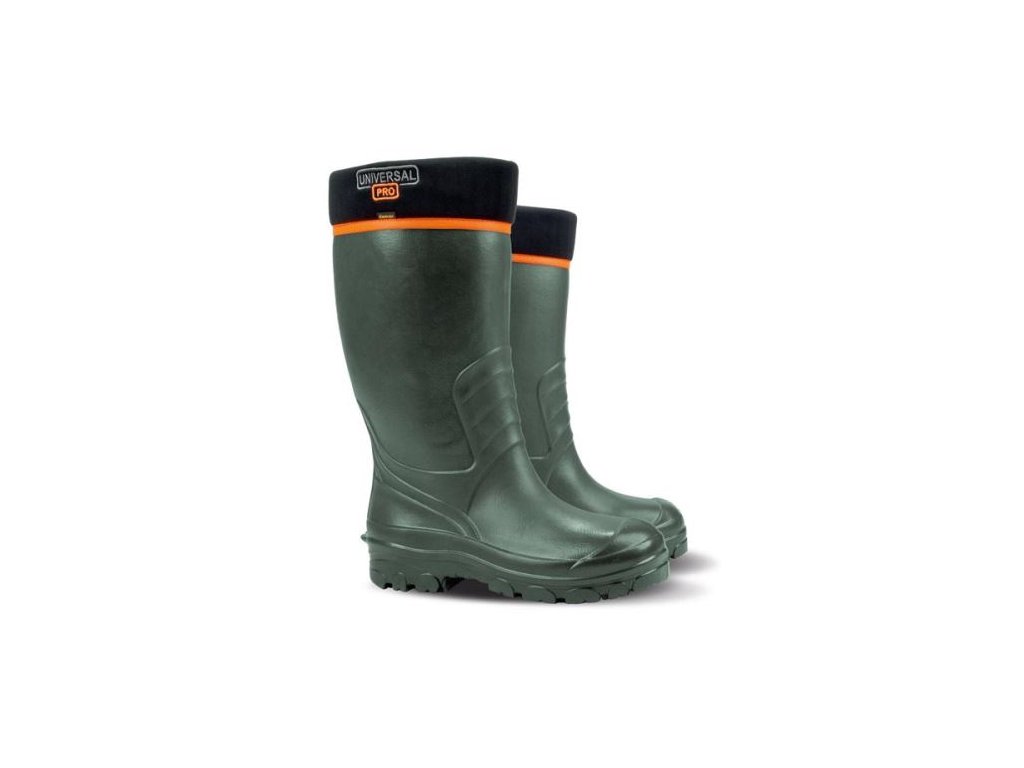 NOVÉ UNIVERSAL PRO sú veľmi ľahké pánske gumáky vyrobené z EVA peny, ideálne na záhradu, rybolov alebo poľovníctvo. Majú tepelnoizolačné vlastnosti až do -30 °C. Vo vnútri je použitá odnímateľná tepelná vložka. Čižmy sú vybavené protišmykovou podrážkou, ktorá poskytuje vynikajúcu izoláciu od zeme.