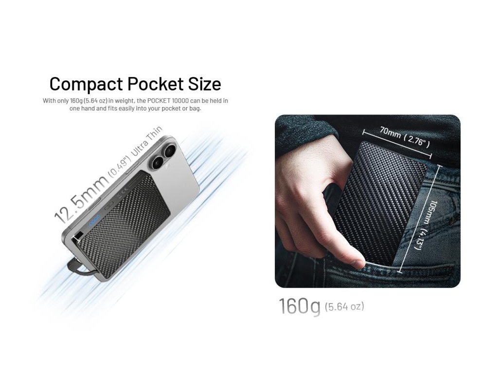 POCKET 10000 powerbank 10 000 mAh / 3A/ 22,5W max.