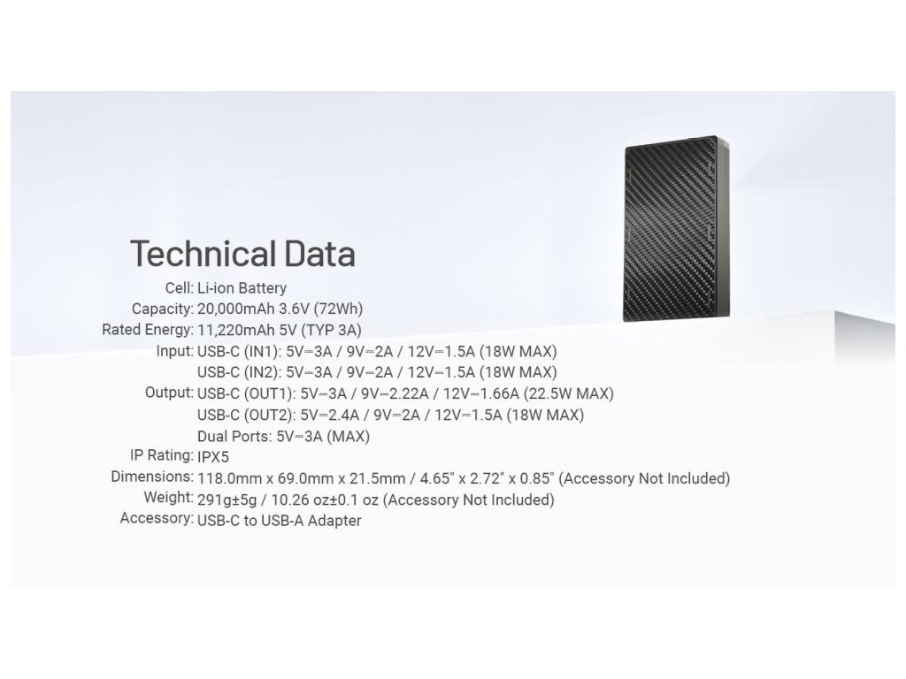 USB-C (OUT1): 5V=3A / 9V=2,22A / 12V=1,66A (22,5W MAX)