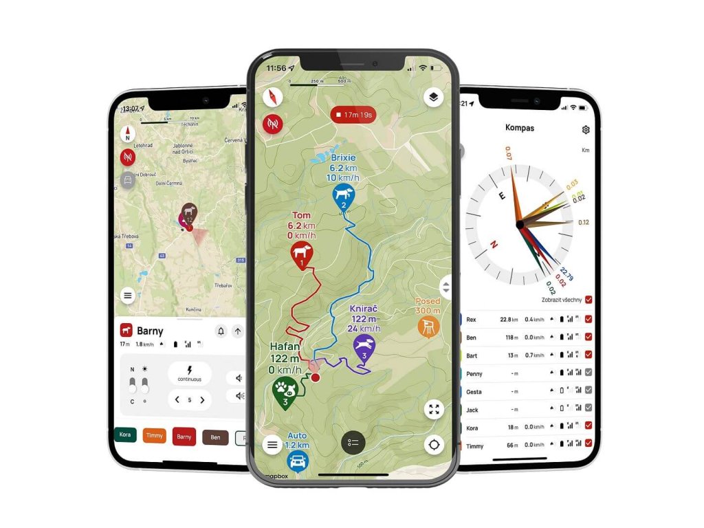 - Sledovanie až 13 psov, psovodov alebo bodov trasy