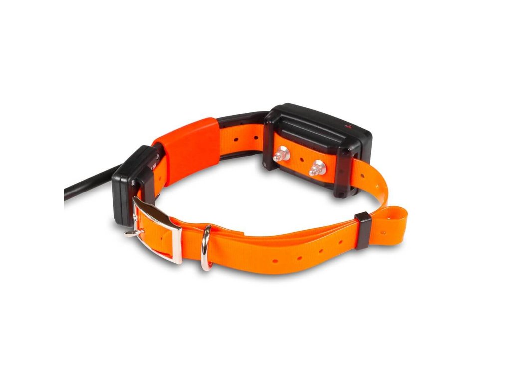- Krátka verzia vysielača (obojok) vrátane Li-Pol 1900 mAh batérie a plastového remienka 20 mm × 55 cm