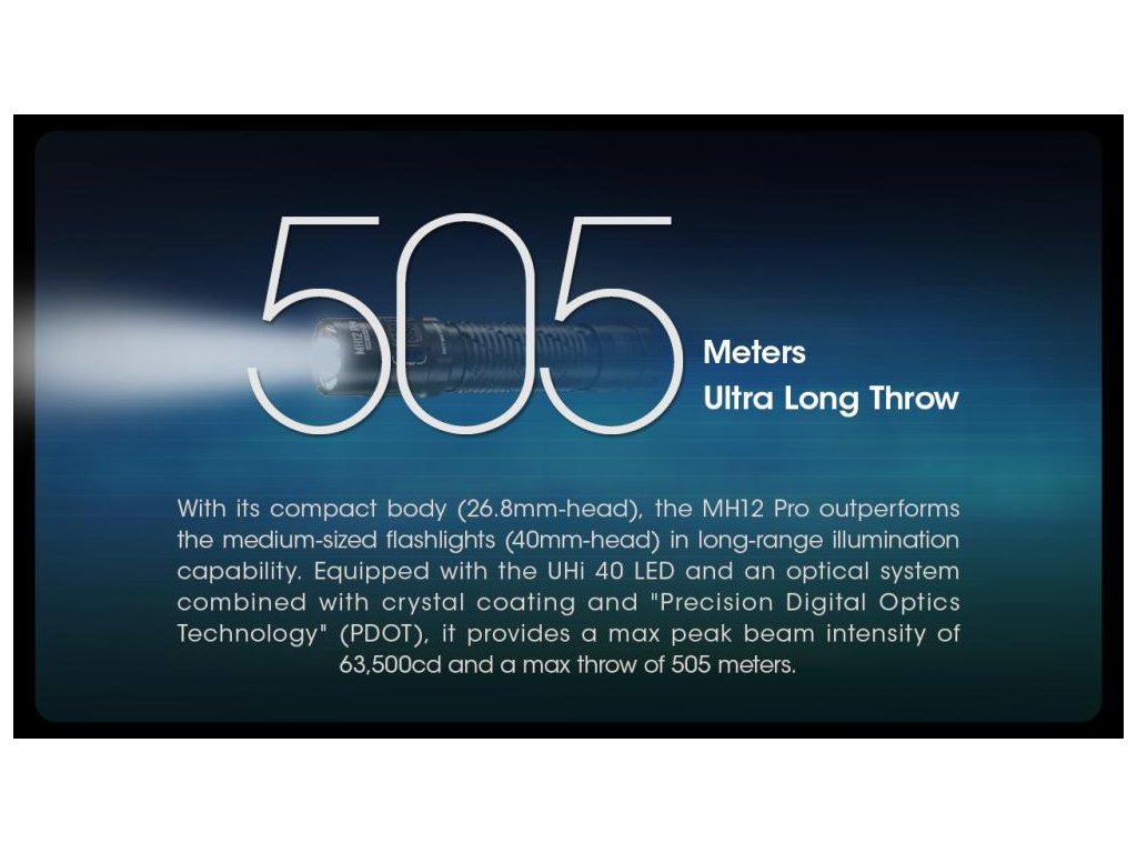 - Optimalizovaný, výnimočne presne navrhnutý reflektor poskytuje dlhší dosvit lúča ako konkurenčné produkty.