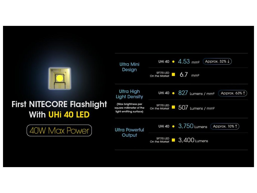 - Používa vysoko kvalitnú NiteLab UHi 40 LED