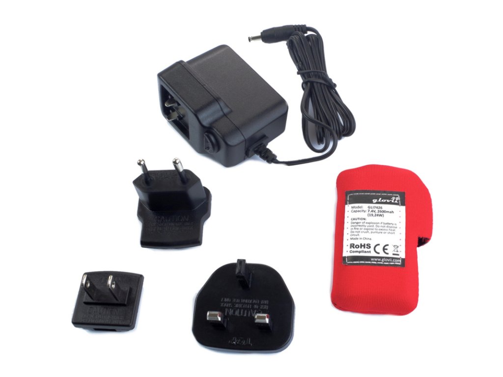- Nabíjačka 110 – 230 V so sadou adaptérov (EÚ, Spojené kráľovstvo, USA) alebo univerzálna USB nabíjačka